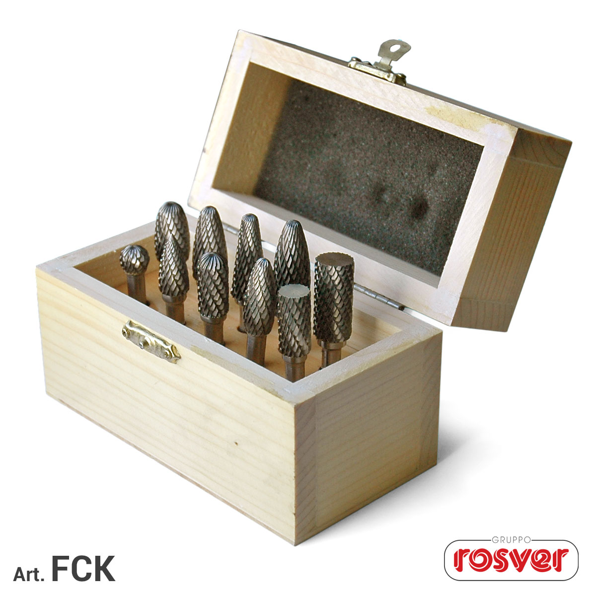 Kit frese al carburo di tungsteno, confezione in legno.